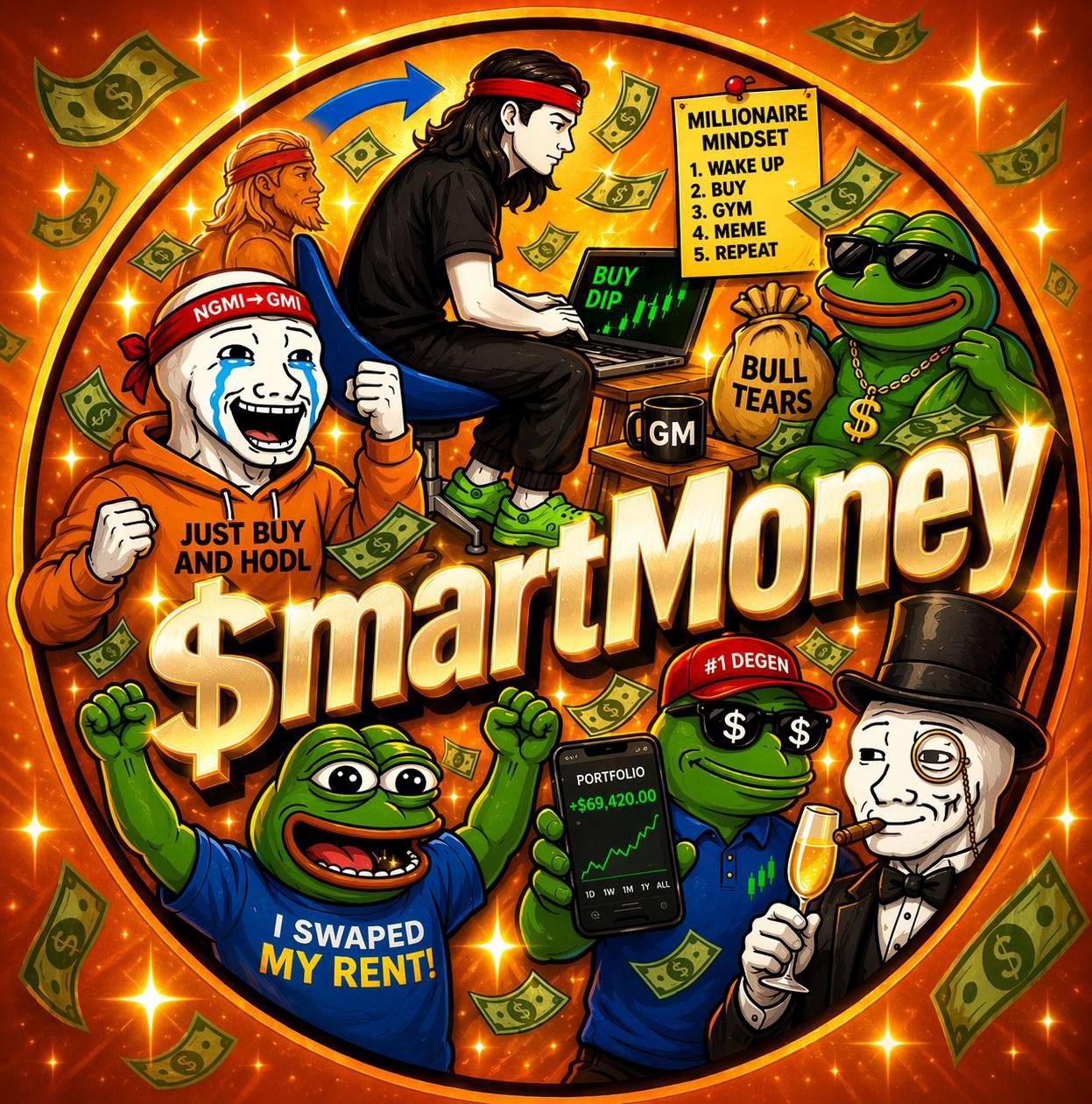 From Pepe to Wojak, from the hoodie degen to the top-hat whale β $martMoney unites the most iconic characters in crypto. No dev wallet, no rug. Just pure degen energy.